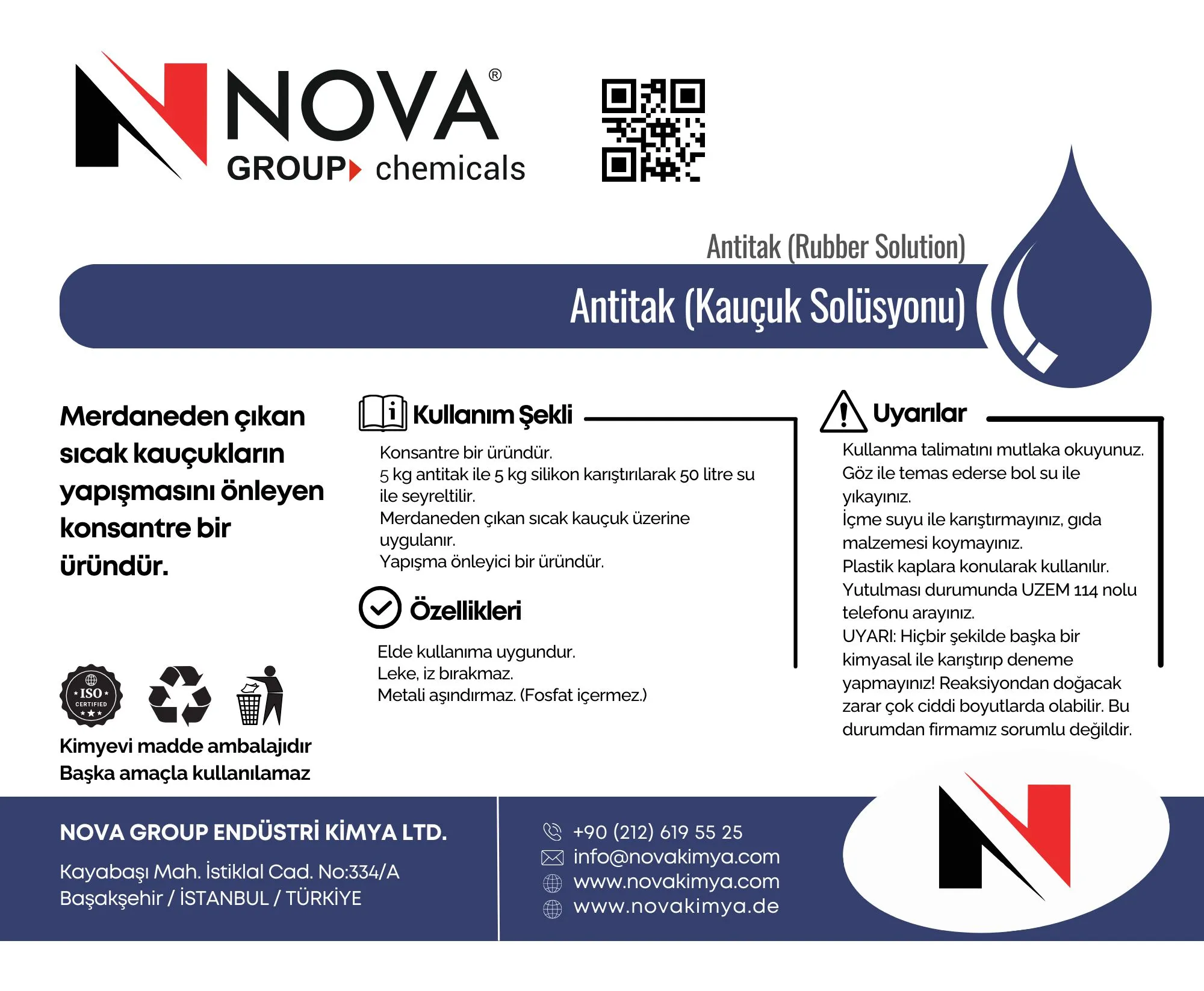 UYARI: Hiçbir şekilde başka bir kimyasal ile karıştırıp deneme yapmayınız! Reaksiyondan doğacak zarar çok ciddi boyutlarda olabilir. Bu durumdan firmamız sorumlu değildir.